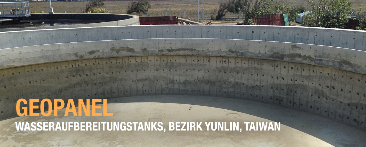 Da Geopanel für den manuellen Bau entwickelt wurde, musste es aus relativ kleinen Modulen bestehen, die von einzelnen Arbeitern hochgehoben werden können. Obwohl es ursprünglich für flache Strukturen wie flache Wände, Balken und Säulen vorgesehen war, konnte Geopanel aufgrund seiner Modularität für eine Reihe kreisförmiger, 8 bis 21 m hoher Wassertanks im Bezirk Yunlin verwendet werden.