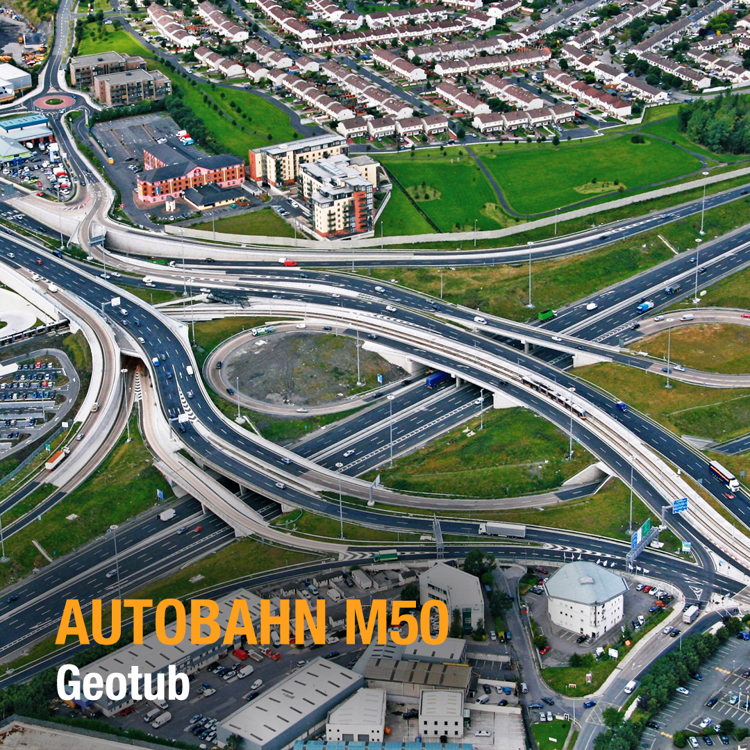 Die Erweiterung der M50-Autobahn beinhaltete den Bau eines neuen Kreisverkehrs über der bestehenden Autobahn. Geotub ermöglichte eine schnelle und einfache Konstruktion der Säulen ohne Kräne und schwere Maschinen, wodurch die Verkehrsunterbrechungen minimiert wurden.