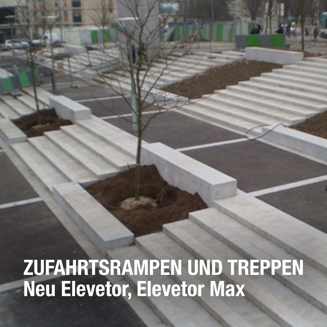 Neu Elevetor und Elevetor Max bestehen aus Grundsockeln, Oberschalungen und höhenverstellbaren Vertikalrohren. Dies ermöglicht die Herstellung von flachen, gestuften oder geneigten Flächen mit einer Höhe von bis zu 3 m und macht sie perfekt für Zufahrtsrampen und Landschaftsprojekte.