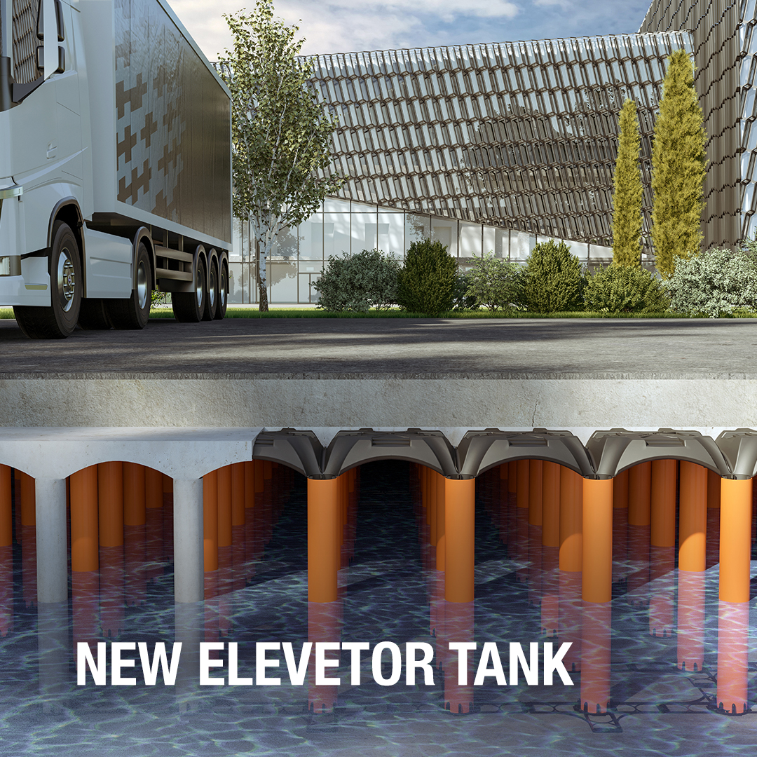 New Elevetor Tank is our permanent formwork for constructing concrete rainwater tanks cast on site. Its high load capacity makes it indispensable for water management and reuse under residential or commercial buildings, as well as areas subjected to heavy traffic.