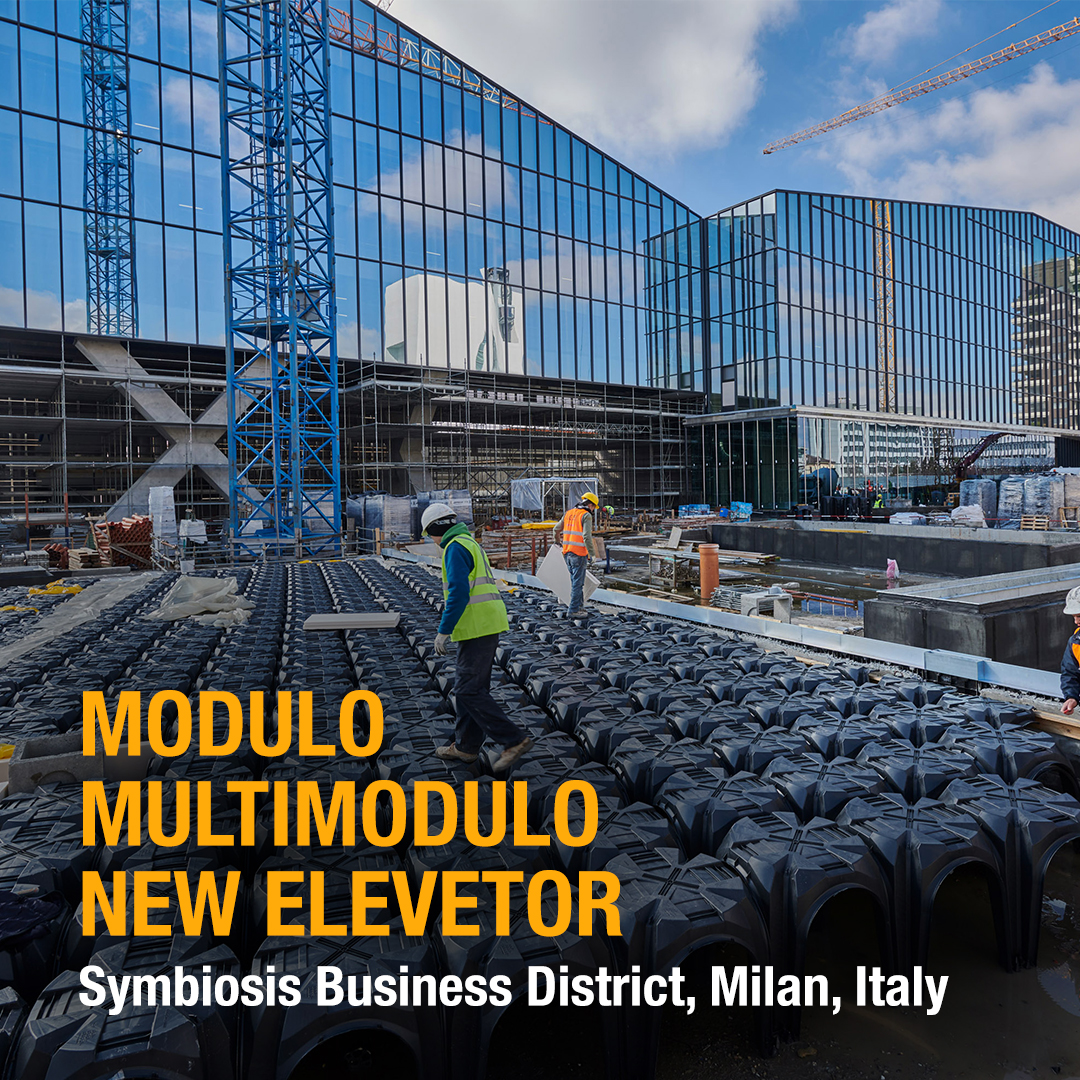 Geoplast foundation products, such as Modulo, Multimodulo, and New Elevator, are designed to create stepped, sloped, or flat pedestrian areas up to 3 m in height. Simultaneously, they form void spaces that can be utilized for MEP systems, such as fountains, irrigation, or restroom facilities.