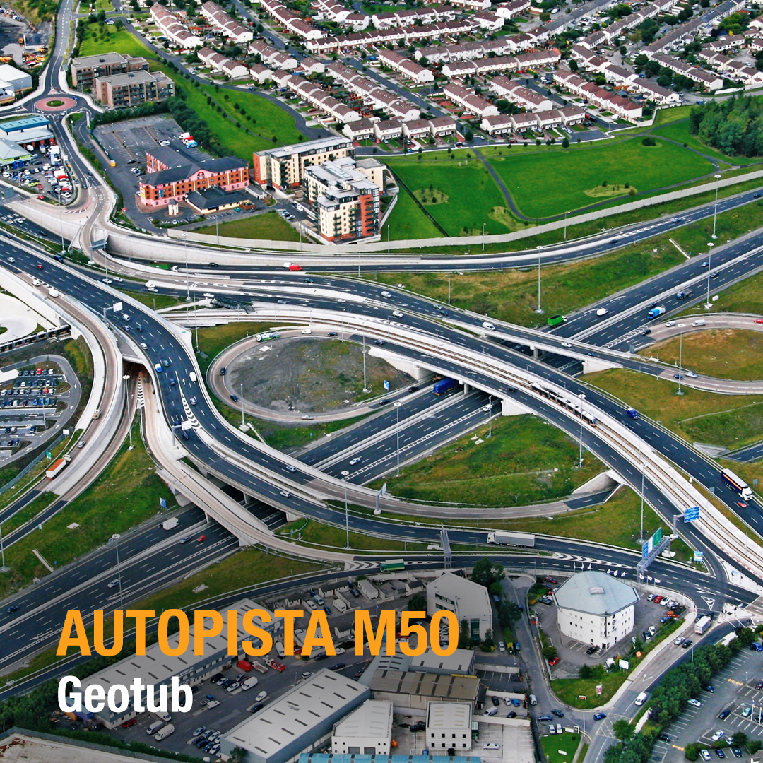 La ampliación de la autopista M50 supuso la construcción de una nueva rotonda sobre la autopista existente. Geotub permitió construir columnas de forma rápida y sencilla, sin grúas ni maquinaria pesada, reduciendo al mínimo las interrupciones del tráfico.
