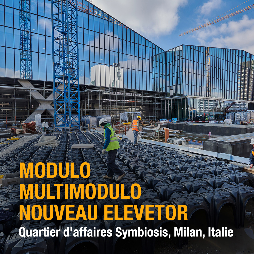 Les produits de fondation Geoplast, tels que Modulo, Multimodulo et Nouveau Elevator, sont conçus pour créer des zones piétonnes en escalier, en pente ou plates jusqu’à 3 m de hauteur. Simultanément, ils forment des espaces vides qui peuvent être utilisés pour les systèmes MEP, tels que les fontaines, l’irrigation ou les toilettes.