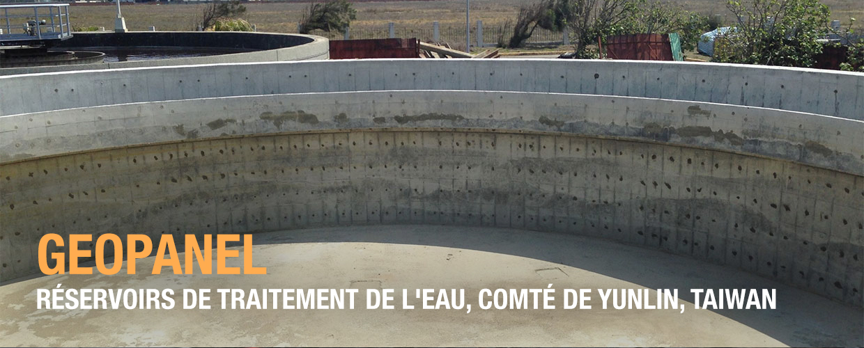 Parce qu’il a été conçu pour la construction manuelle, Geopanel devait être composé de modules assez petits qui pouvaient être soulevés par des travailleurs seuls. Bien qu’il ait été initialement conçu pour des structures plates telles que des murs plats, des poutres et des colonnes, la modularité de Geopanel lui a permis d’être utilisé pour une série de réservoirs d’eau circulaires de 8 à 21 m dans le comté de Yunlin.