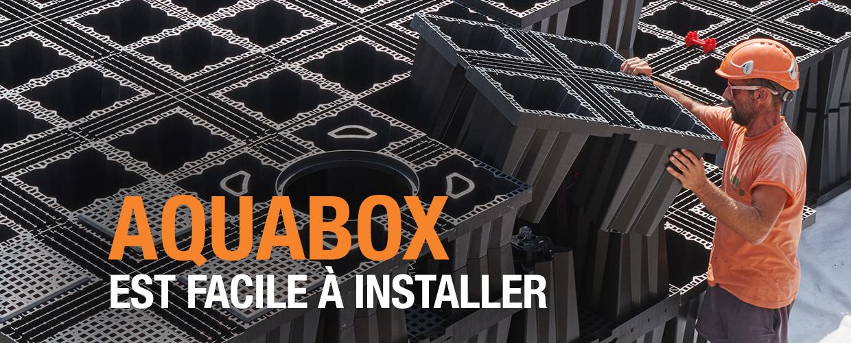 Aquabox été conçu pour une installation rapide et facile. Pesant moins de 10 kg, ses modules en plastique recyclé s’assemblent sans outils électriques, permettant un montage rapide des bassins de gestion des eaux pluviales de toutes tailles, même par des travailleurs inexpérimentés: