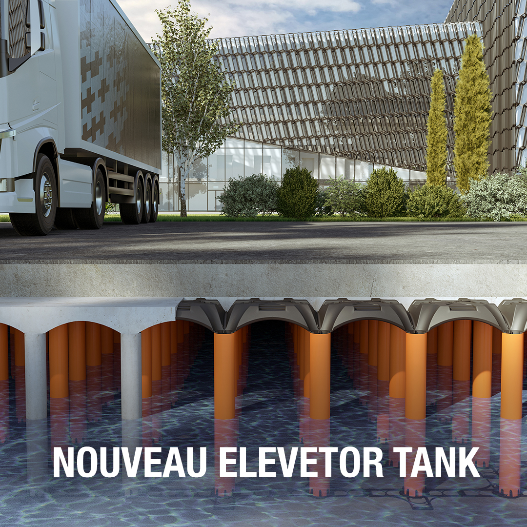 Nouveau Elevetor Tank est notre coffrage permanent pour la construction de réservoirs d’eau de pluie en béton coulés sur place. Sa capacité de charge élevée le rend indispensable pour la gestion et la réutilisation de l’eau sous les bâtiments résidentiels ou commerciaux, ainsi que dans les zones soumises à une circulation intense.
