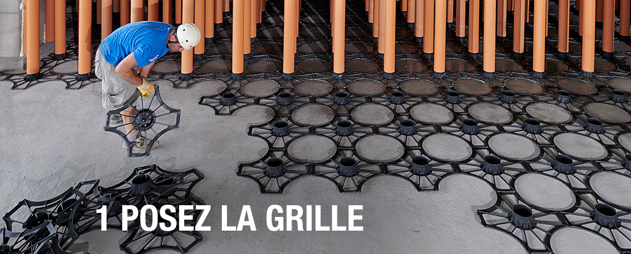 Les ouvriers ont d’abord créé la grille de base en plaçant et en reliant les socles entre eux.