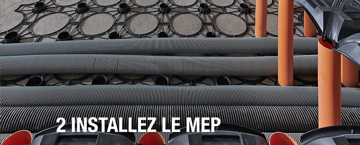 La grille de base a servi de grille de guidage pour une installation plus facile et plus précise des systèmes MEP.