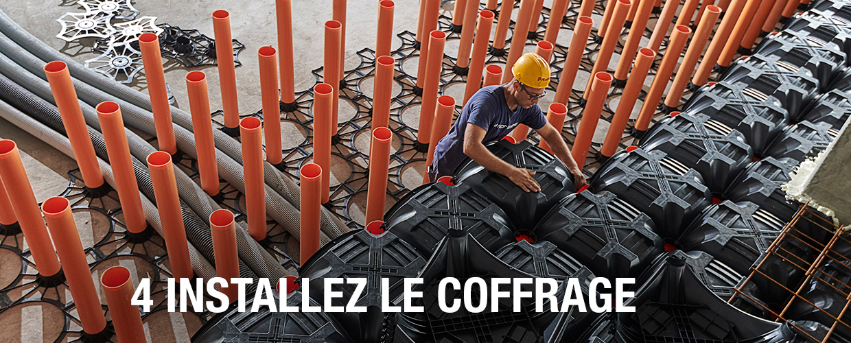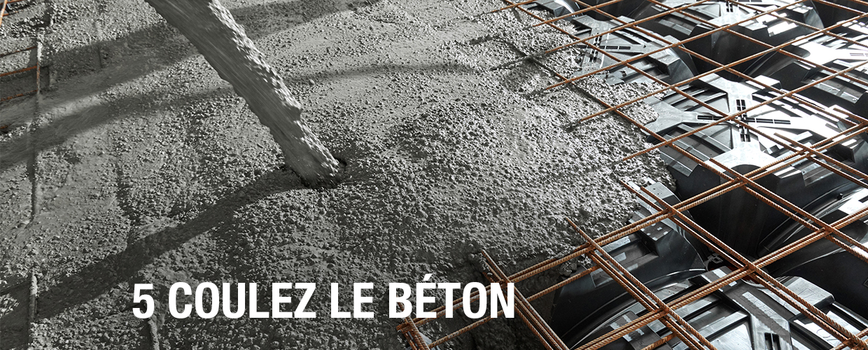 Le treillis d’armature a été placé au-dessus du coffrage, sur lequel le béton a été coulé et vibré.