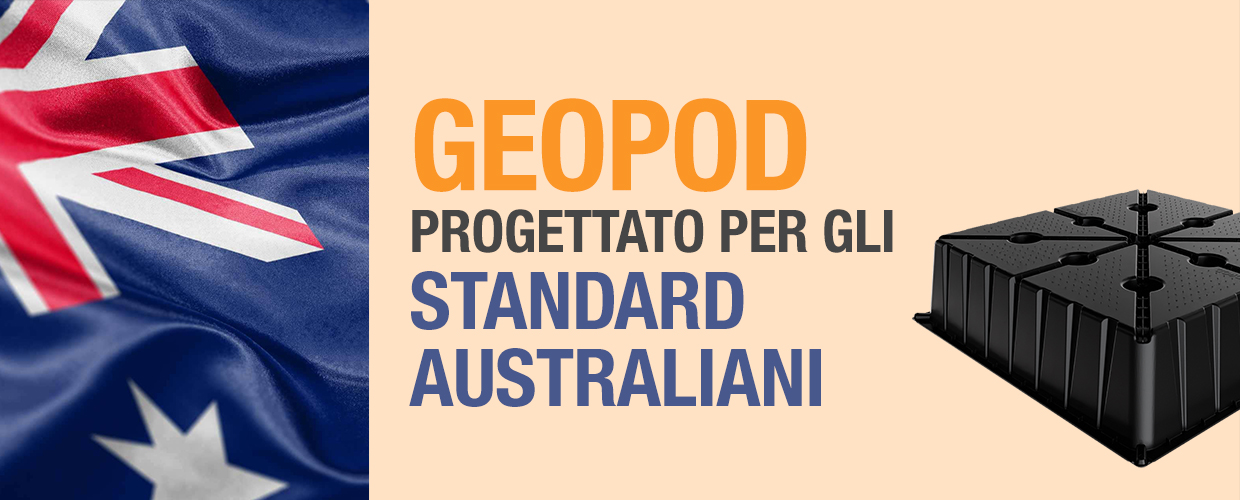 Realizzato con moduli grandi 109 x 109 x h30 cm. Geopod è progettato per creare nervature in calcestruzzo distanziate di 120 cm, rispettando la dimensione massima consentita dalla norma AS 2870-2011 per le lastre e fondazioni a terra.