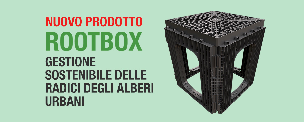 - Rootbox è il nostro nuovo prodotto brevettato in plastica riciclata per la gestione sostenibile delle radici degli alberi negli ambienti urbani.