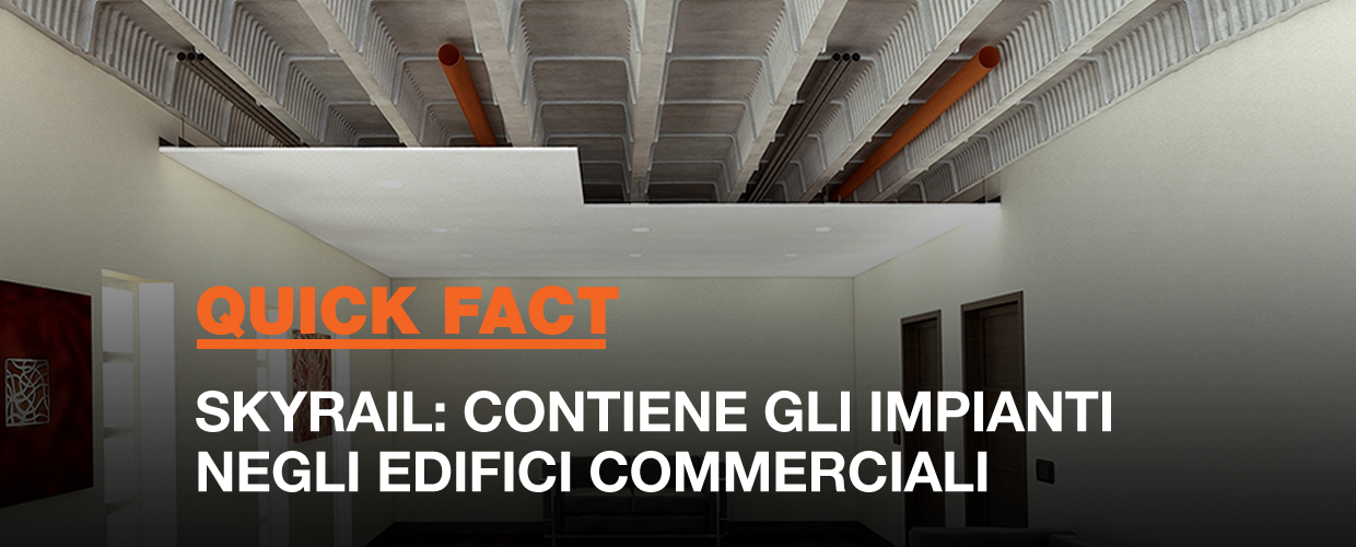 Skyrail è una cassaforma riutilizzabile per la costruzione di solai monodirezionali in cemento armato che può essere utilizzata come alloggio per gli impianti meccanici, elettrici ed idraulici. Lo spazio tra le nervature di calcestruzzo consente il posizionamento di sistemi idraulici ed elettrici all’interno del solaio. Questa soluzione è particolarmente adatta per edifici commerciali con grandi campate e per soluzioni impiantistiche complesse.