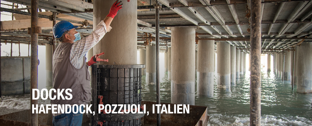 Säulenreparaturen unter maritimen Bedingungen sind mit Holz- und Metallschalungen oft unmöglich. Geotub wurde aus haltbarem und wasserbeständigem ABS-Kunststoff hergestellt, der eine seitliche Installation für eine einfache und zeitnahe Docksanierung ermöglicht.