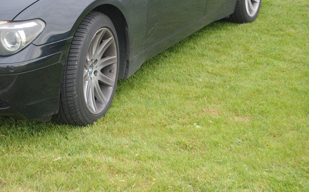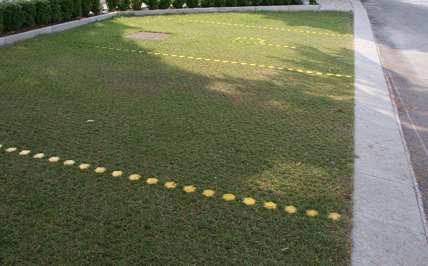 Durchlässiges Pflasternetz für begrünte Parkplätze auf bestehenden Rasenflächen