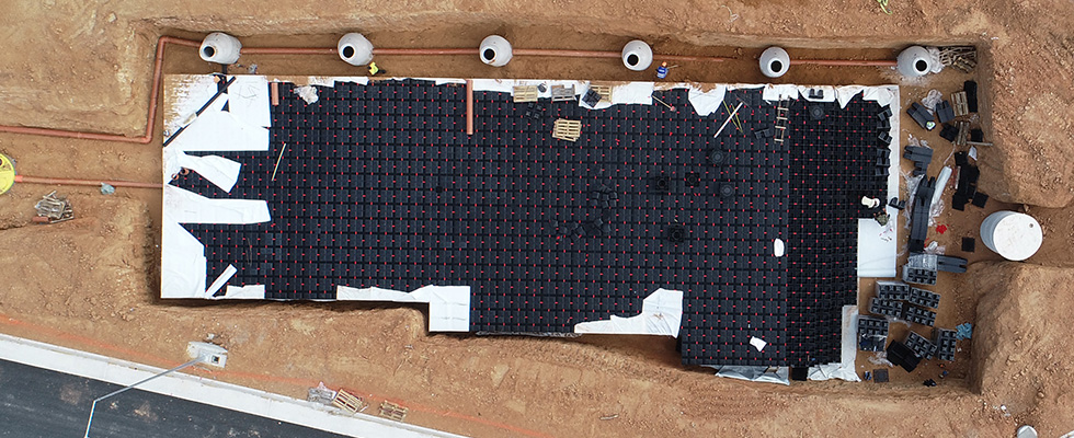 Mit DRENING und DRAINPANEL lassen sich Entwässerungsgräben oder Laminierbecken erstellen, die eine schnelle Regenwasserentsorgung gewährleisten. Sie können sowohl in Grünflächen (Blumenbeete im Kreisverkehr) als auch in Durchgangsbereichen platziert werden, da sie sehr widerstandsfähig sind. Die Modularität der Produkte ist perfekt auch für die Installation unter unregelmäßigen Oberflächen.