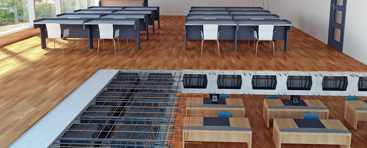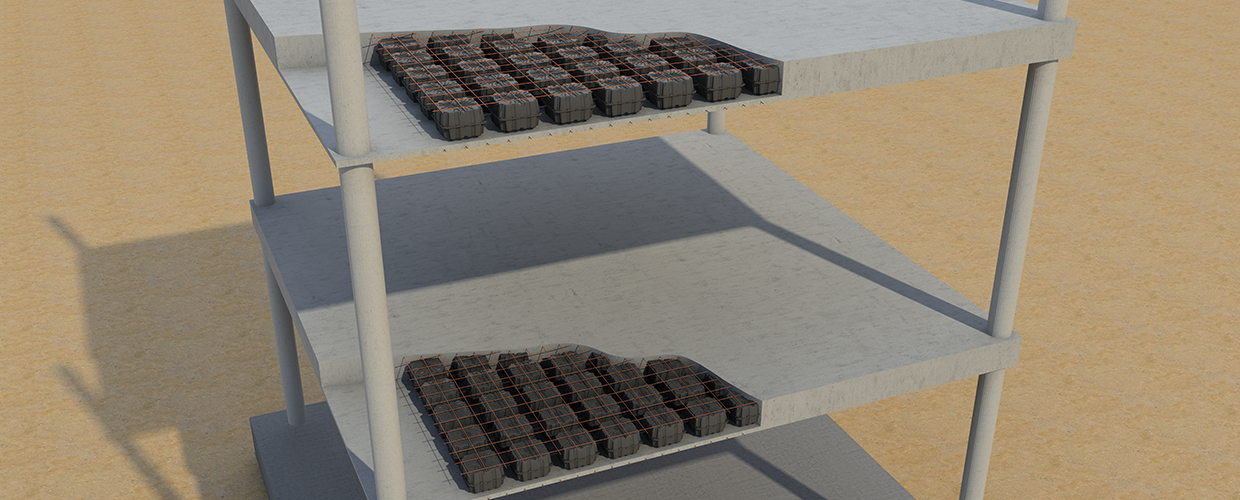 Auf diese Art und Weise ist es möglich, bidirektionale Platten mit großen Spannweiten zu realisieren die große Belastungen standhalten, und gleichzeitig eine Verringerung des Gewichts und des Betonverbrauchs von bis zu 25% erreicht werden kann.