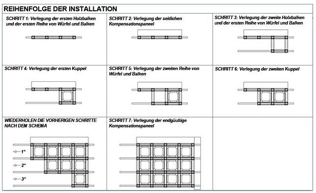 | RIPPE (mm) | ACHSABSTAND (mm) | N° KUPPELN per m2 | BALKEN TYPOLOGIE | N° BALKEN per m2 | WÜRFEL per m2 |