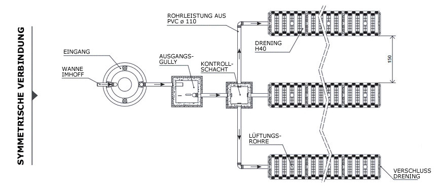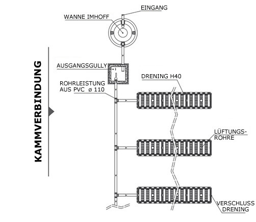 Die Einschitten sind mit einem verzweigten Rohr verbunden. Es ist auf jede DRENING Reihe veredelt.