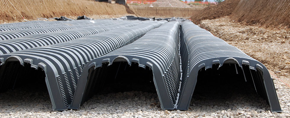 Das DRENING System ist so ausgelegt, dass unterirdische Rückhaltebecken für das "in-situ" Regenwassermanagement geschaffen werden: ein Element für die Installation von hochleistungsfähigen Dispersions- und Akkumulationskammern.