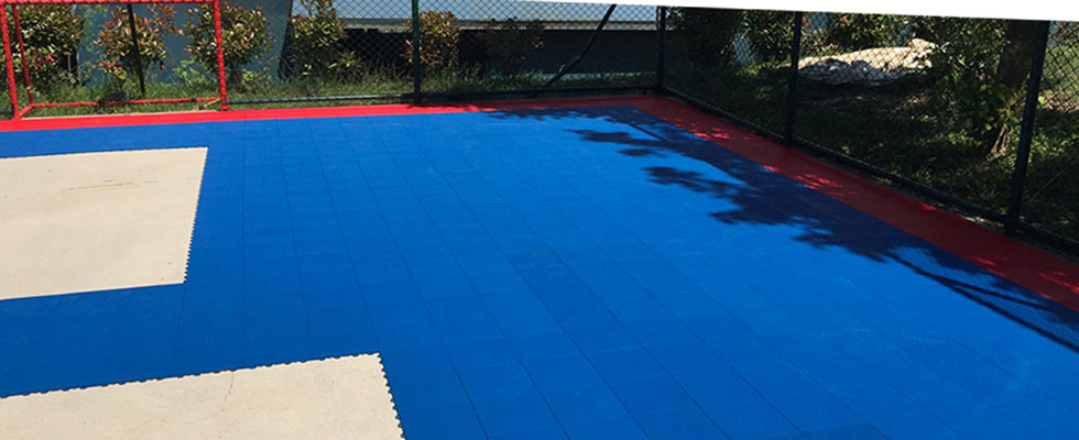Gripper Oudoor ist an jede Art von Raum und Oberfläche anpassbar, in diesem Fall wurde es über einer Betonoberfläche für das Training von Basketball und Fußball verwendet. Beide Sportarten erfordern hohe Leistung, schnelles Spiel, perfektes Scrollen und Springen. Dank der perforierten Oberfläche des Grippers war dies kein Problem. Darüber hinaus, im Falle von Regen die Fliesen schnell ablaufen, so dass Sie das Spiel sofort wieder aufnehmen und jede Art von Verrutschen zu vermeiden.