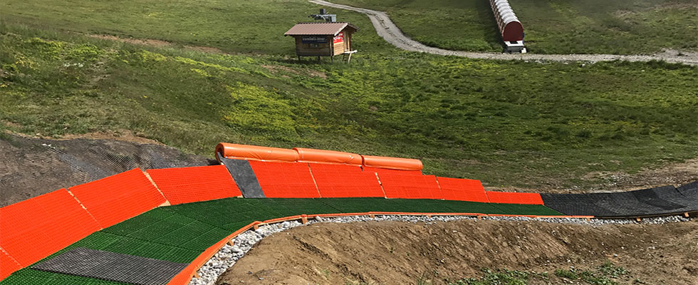 Im Anzere-Tal in der Schweiz wurde Geoski verwendet, um einen Tubinghang für den Sommer zu schaffen, wenn der Schnee fehlt.