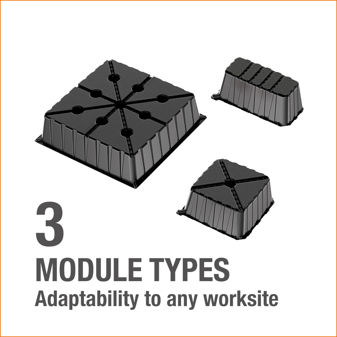 The Geopod range consists of 3 module types – large, midi, and mini modules – along with specially designed spacers, providing adaptability to various slab shapes and worksite situations.
