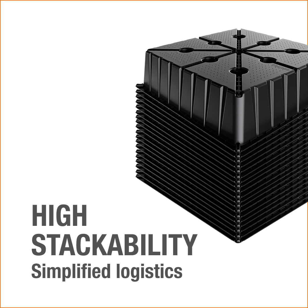 The high stackability of Geopod simplifies reduces logistical requirements compared to EPS pods, resulting in significant savings in transportation and storage.