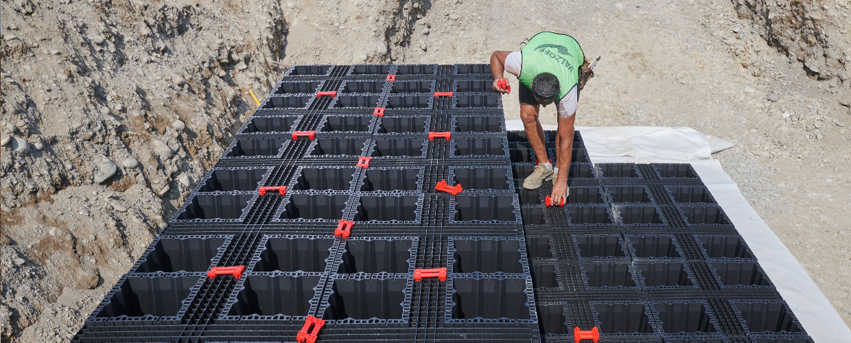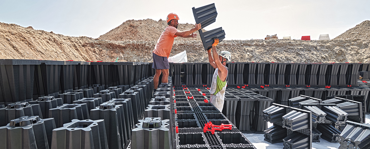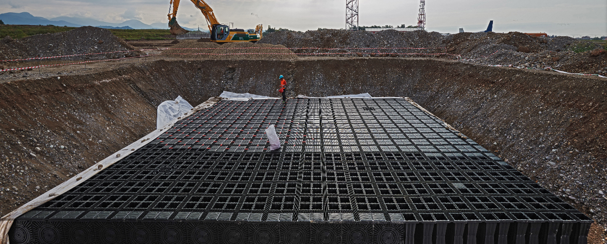 Our experts suggested Aquabox: it was modular, lightweight, stackable, and exceedingly faster to install, taking dozens of truckloads less to transport. It was also recycled, high load-bearing, 100 % inspectable, and had 96 % retention capacity, coming forward as a far more efficient and sustainably profitable solution than the alternatives.
