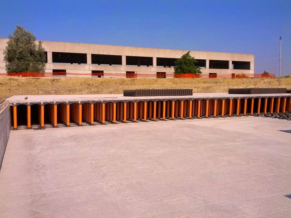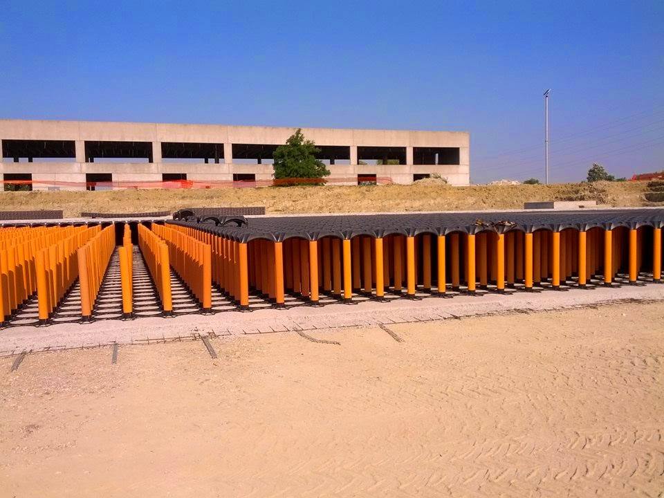 Geoplast used ‪#‎ELEVETORTANK, our innovative system to build high capacity accumulation tanks, in order to build a water storage system of 4,070 m², 1,20 m high under the mall.