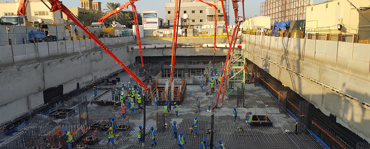 Work in progress in Dubai for the construction of the rampant horse’s new showroom, the most famous Italian luxury car brandGeopanel, reusable formwork system in ABS technopolymer for walls and forefather element of Geoplast ABS formwork family products, has been chosen to erect the boxouts and perimeter walls of the basement.