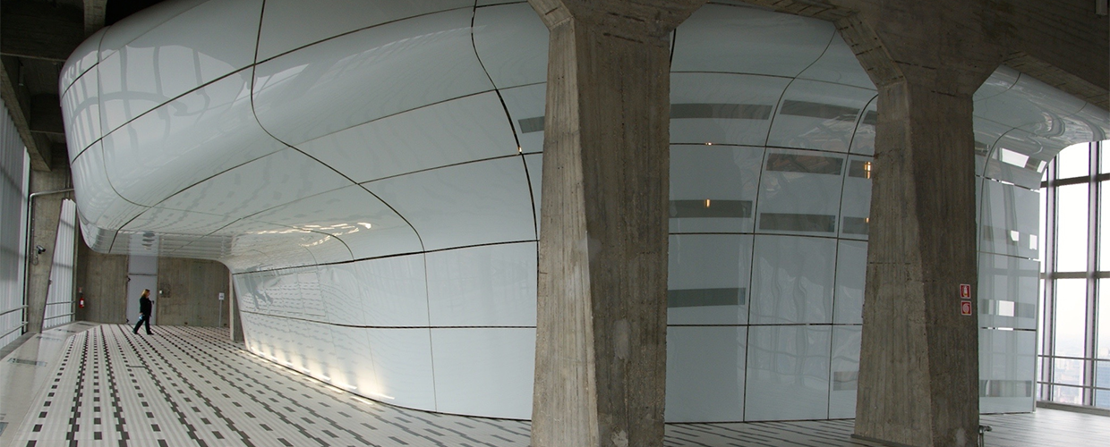 Tour de la Bourse is a 48-storey skyscraper, 190 mt. high, situated in Montreal. When completed in 1964, the tower was the tallest building in Canada, a title it held until surpassed by the Toronto-Dominion Centre in 1967. Exposing the frame on the façade, Nervi diversified and conferred a hierarchy on the elements. The expression of the tower, wrapped by a continuous lightweight façade in glass and aluminum, is dominated by the incisive presence of the columns that rise up at each corner, and by the complex geometry of its volume, simultaneously paunchy and tapering.