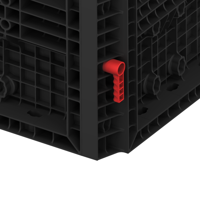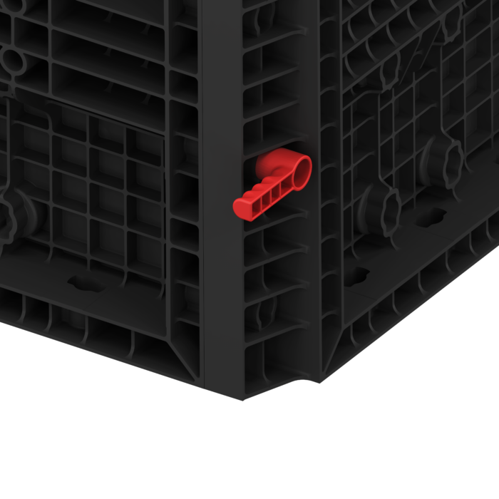 GEOPANEL STAR placing on-site and removal are easy and fast thanks to the handles that allow the fixing of the formwork with a rotation of 90 degrees.
