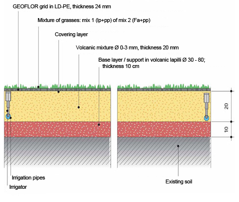 It is recommended to wait for the grid grassing and also it would be better to cut it twice before using the area. Moreover, you should perform the green surface mantainance periodiacally, fertilizing it correctly and checking if the irrigation system is still working.