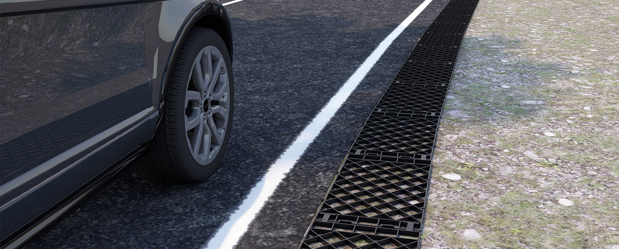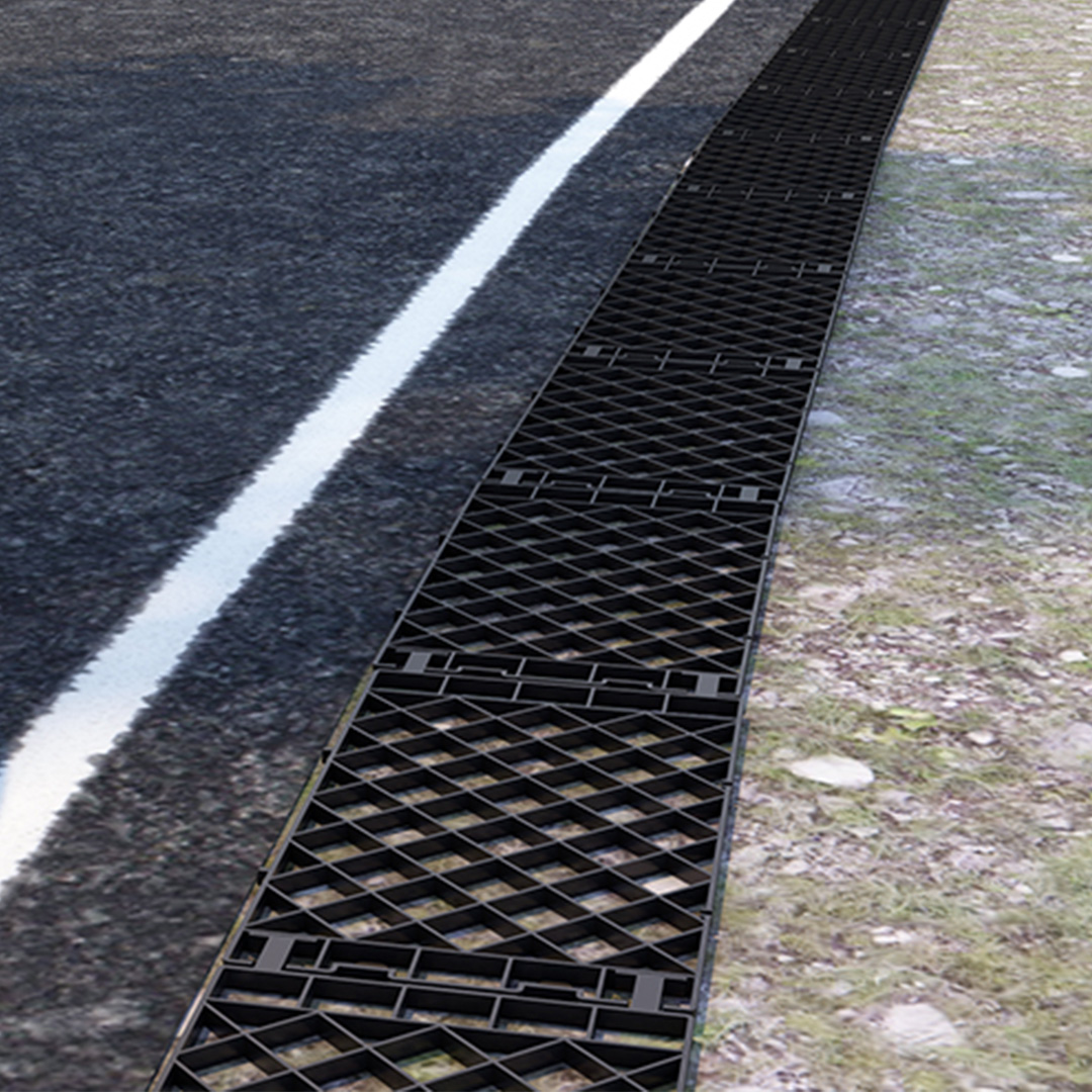 The small width of the grid allows easy adaptation to any marginal zone of the roadway.