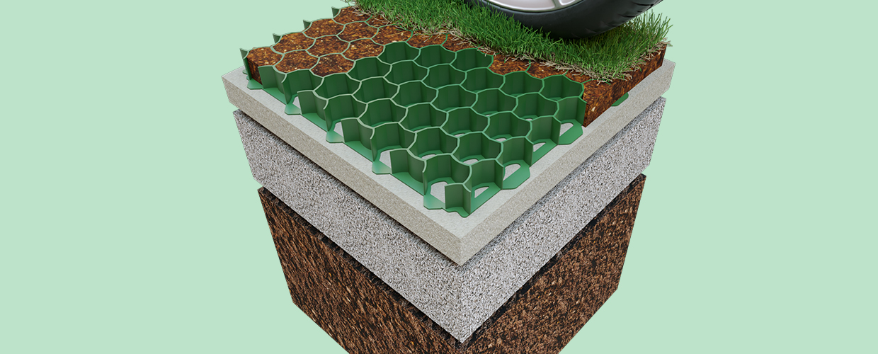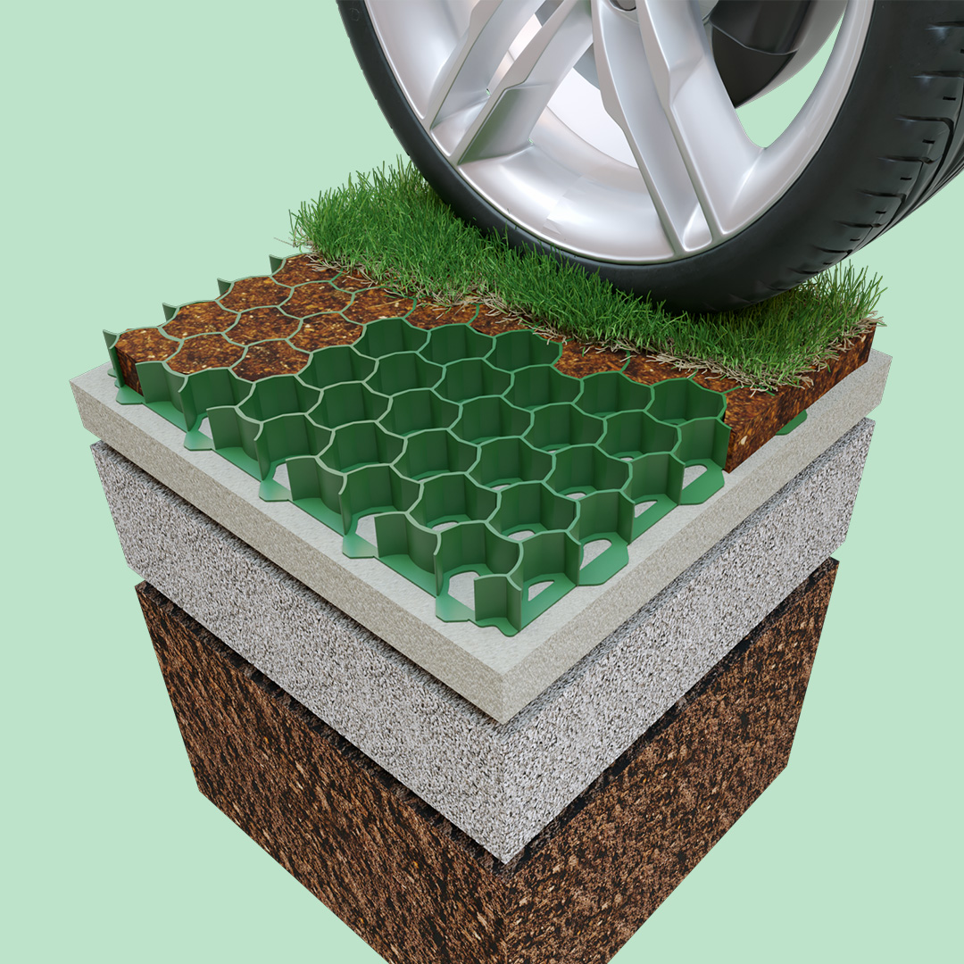 Salvaverde protects the grass root system from the passage of pedestrians and rubber-tired vehicles, while its honeycomb structure and anti-slip surface ensure safe and easy transit.