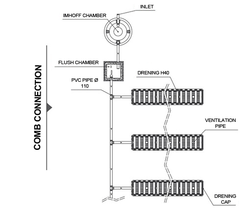 Dugouts have a serpentine connection with the pipe that is inserted over the caps of leading and tailing of each DRENING line.