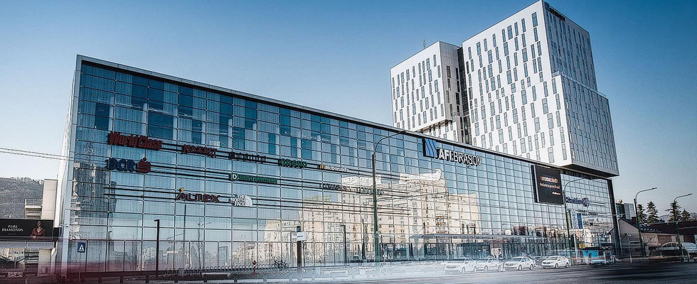 AFI Brasov shopping mall entails a 93,000 m2 area, with more than 200 shops, 1,600 parking spots, and a 3,500 m2 green roof. It is a certified LEED GOLD green building.
