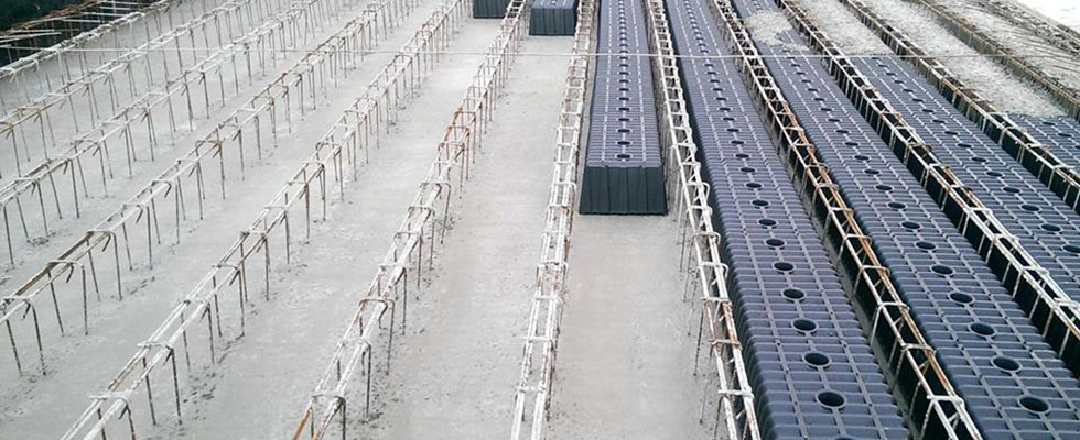 Geoplast contributed to the construction of this large and innovative building with Airplast, the lightened monodirectional formwork for slabs. In this way, it was possible to build monodirectional slabs poured on site with large spans. Allowing the creation of a lightweight slab and reducing the consumption of steel and concrete.