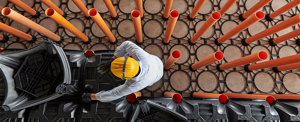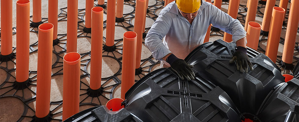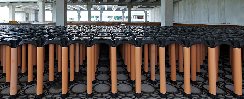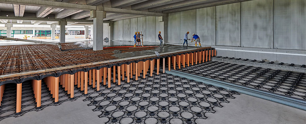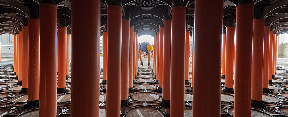 Geoplast New Elevetor was the perfect solution to build the foundations of the new part of the warehouse. Our product is ideal for buildings used for refrigeration purposes which are increasingly common in the food industry. In these situations a process known as frost heaving (or frost heave) occurs: when the water contained in the soil freezes, its volume increases and expands upwards, with a risk of raising the foundation package and consequently leading to the formation of warps and cracks on the floor. Damages caused by a frozen floor can lead to serious structural problems, and New Elevetor was the safest and most cost-effective way to avoid frost heaving.