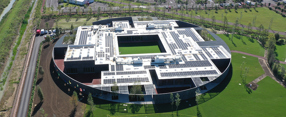 H-FARM Campus is located in Sile River natural park, in the Ca' Tron area, one of the largest agricultural estates in Italy. It was designed by Richard Rogers and Marian Zanon, as one of the most important innovation hubs in Europe. It incorporates several administrative, educational, training, and housing sectors that accommodate more than 3,000 people. Thanks to New Elevetor and other advanced technologies applied in its construction, H-FARM is a sustainable complex that is self-sufficient for 85% of its energy needs.