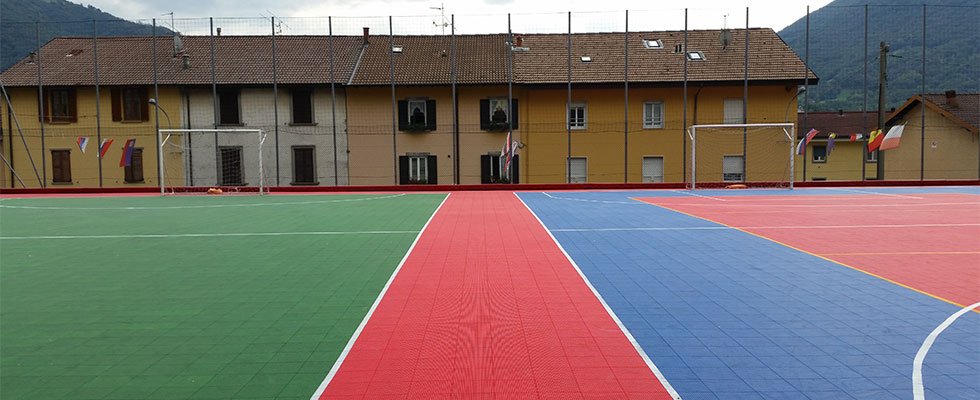 In Bergamo, near Milan, the church sports area has been restored using Gripper Sport Outdoor. It was used to create a green futsal sports field and red and another blue and red court for basket and volleyball. The old ground was made of resin for asphalt and after just one year, it was already ruined and degraded. Gripper was installed directly on the asphalt, solving practically and quickly the discomfort of the old sports field, creating two brand new courts comfortable and safe for the children who will play on them.