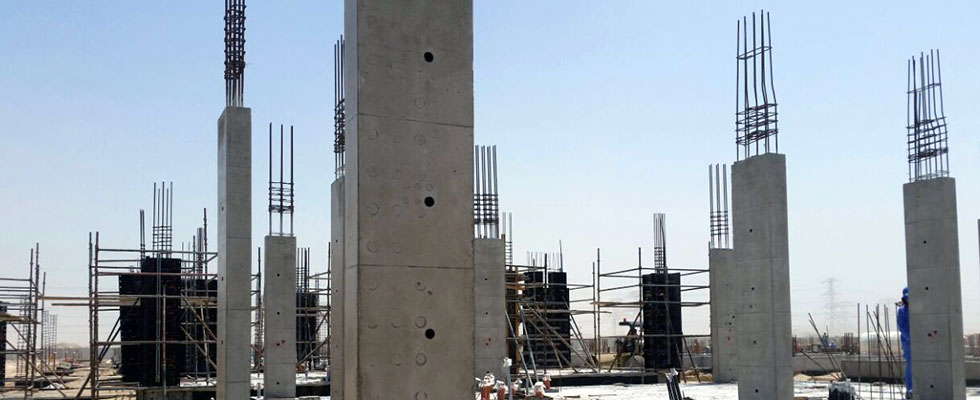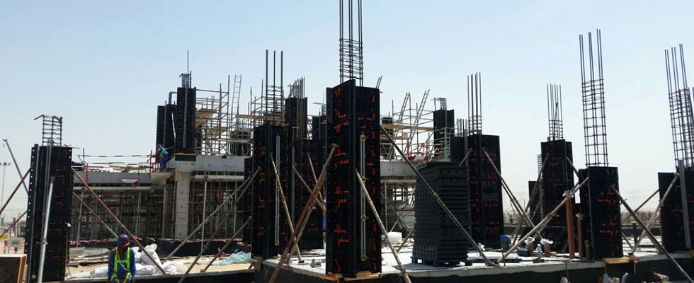 Geopanel Star, Geoplast's plastic formwork for columns and reinforced concrete walls, is used during construction.
