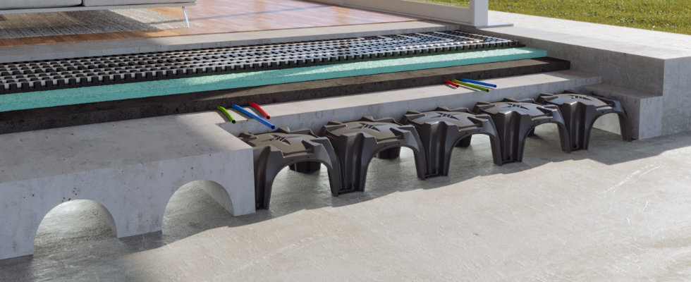 Modulo was used as an innovative solution for the refurbishment of the VIP area and adjacent new kitchen at the Roland Garros stadium renovation. The builders chose the lightweight Modulo H50 to raise the floor level without adding excessive load to the existing structure. The void underneath the floor was used to facilitate the passage and easy inspection of drain pipes.