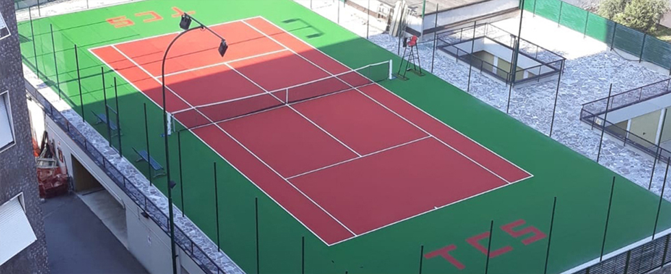 The roof of a garage, an area of around 650 m2, between residential buildings in Milan has been transformed into a tennis court for Tennis Club Serenissima. The existing roof slab has been fitted with a new waterproofing and concrete roof to prevent water infiltration and also provide a flat and stable base for Gripper. The concrete roof has been covered with Gripper Tennis rough tiles, which have a low thickness and lightweight, and do not damage the stability of the existing structure. Gripper pavers are made from recycled plastic; they are reusable and recyclable, contributing to sustainability.