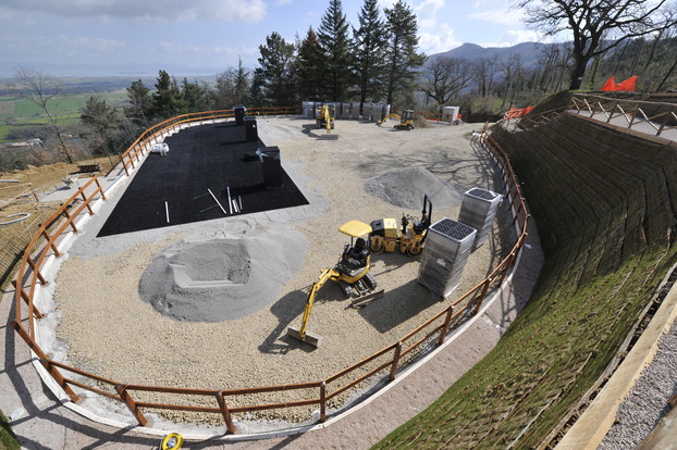 Upon the grid a further stratigraphy of 10-20 cm with technical sands for horse riding will be laid.