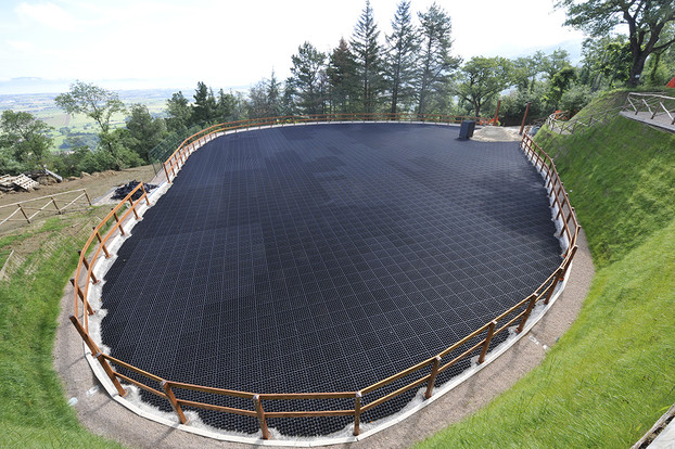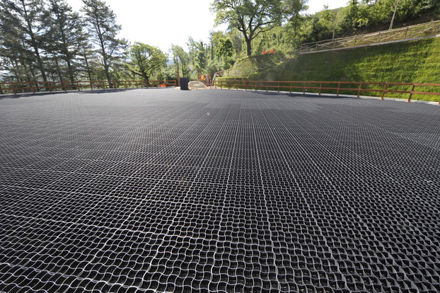 RUNFLOOR grid for equestrian surfaces can be installed thanks to the innovative locking system, which mantains the stability of the surface. The grid will be then covered with gravel or sands.