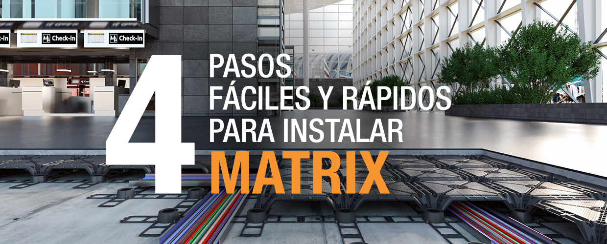 Matrix es nuestro encofrado de plástico reciclado para suelos técnicos elevados de hormigón con sistemas MEP. A diferencia de los suelos técnicos elevados de metal, Matrix está compuesto de sólo 2 elementos: la rejilla base y el encofrado superior, que se arman de forma muy rápida y fácil. Aquí tiene una guía rápida de instalación.