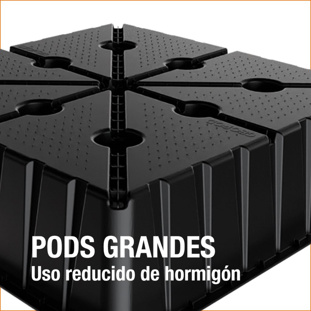 La gama de Geopod consta de 3 tipos de módulos – módulos grandes, midi y mini – junto con separadores especialmente diseñados, lo que proporciona adaptabilidad a diversas formas de losa y condiciones de la obra.