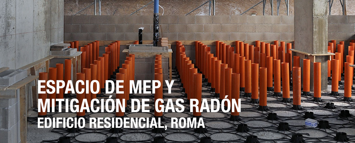Nuevo Elevetor ayudó construir los cimientos ventilados de un edificio residencial en Roma, proporcionando al mismo tiempo la protección contra el gas radón y los espacios de rastreo para el sistema MEP.