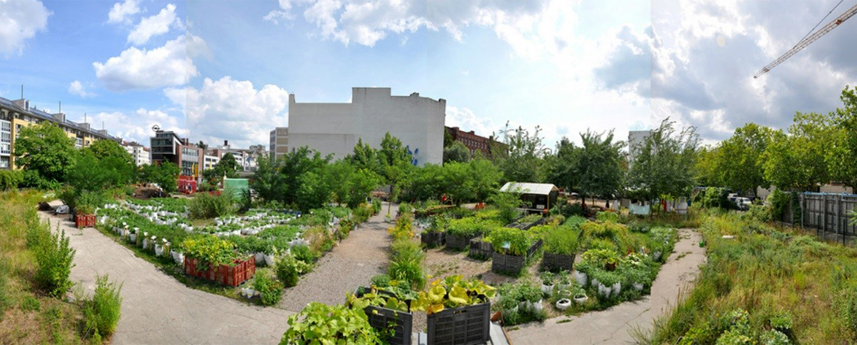Prinzessinnengarten es una granja urbana enclavada a la sombra del antiguo muro de Berlín, donde crece una amplia gama de hortalizas en Tetra Paks, sacos de arroz y cajas de plástico.